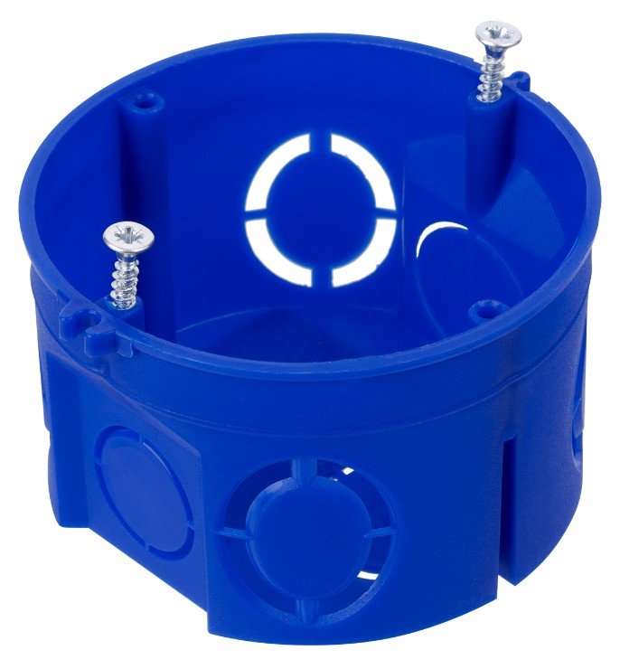 Установочная коробка СП. Подрозетник для сплошных стен, саморезы, без стыковочных узлы, IP20, габ.размеры D68х42мм, синий