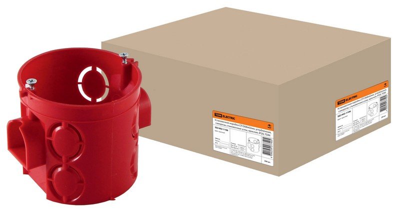 Установочная коробка СП D68х62мм, углубленная, саморезы, стыковочные узлы, красная, IP20, TDM (SQ1402-1106)
