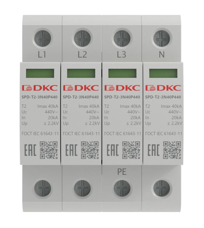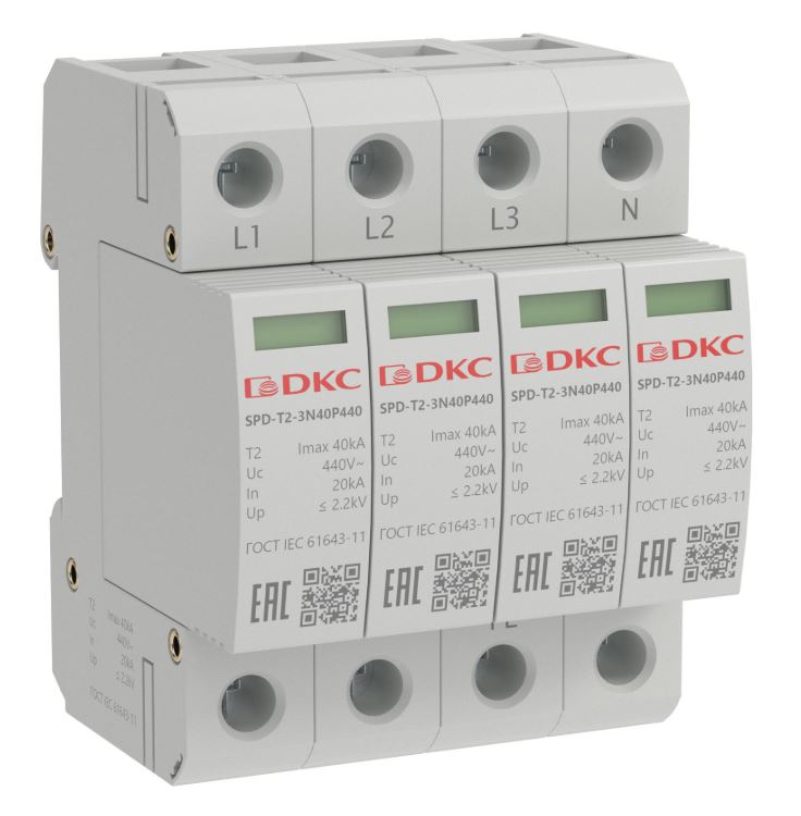 УЗИП, тип 2, 4P Imax 40kA Un 440V (SPD-T2-3N40P440)