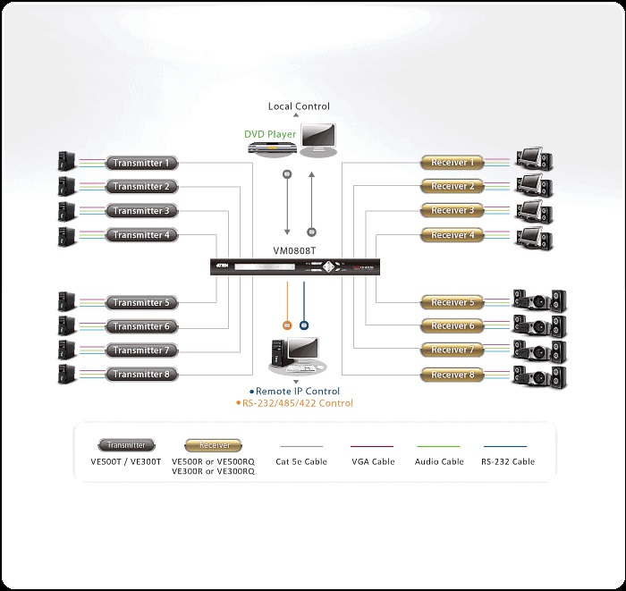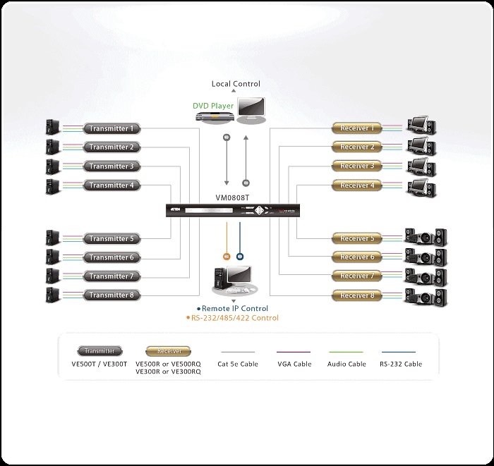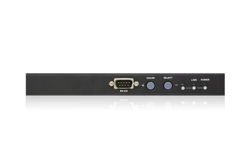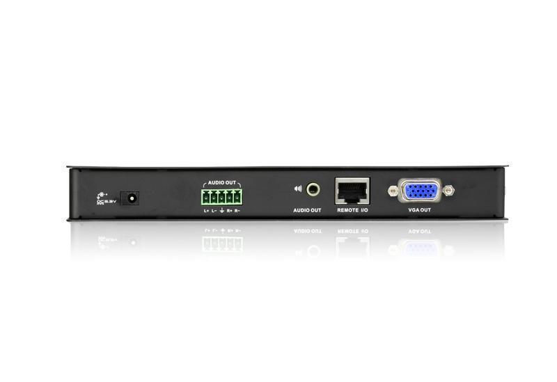Удлинитель KVM. Удлинитель-приемник, VGA/SVGA+AUDIO+RS232, 300 м, 1xUTP Cat5e, HD-DB15+MINIJACK+SCREW 5 POLE+DB9+RJ45, F+F+5xF+M+F, без шнуров, регул.кач видеосигнала; 1920х1200 150м 60Гц; 1280х1024 300м 60Гц, БП в комплекте DC 5В, 6Вт; 0…+50°C; 202х86х25 мм.