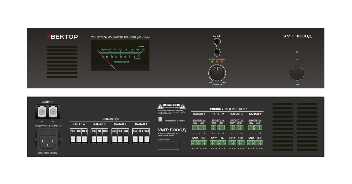 Усилитель мощности 1000Вт. Усилитель мощности класса "D" 1000 Вт; линия 100 В, 70 В; потребляемая мощность 1500 Вт; линейный вход, линейный выход. Индикация режимов работы усилителя. Регулировка уровня выходного сигнала, регулировка НЧ/ВЧ, многоступенчатая защита. Питание 220-230 В/50-60 Гц. Высота 2U. 483х88х375 мм; 13,5 кг.