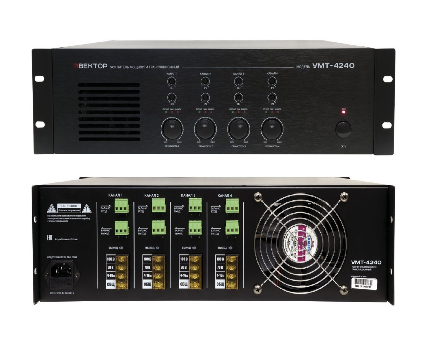 Четырехканальный трансляционный усилитель мощности предназначен для усиления звукового сигнала в системах музыкально-речевой трансляции и аварийного оповещения.
