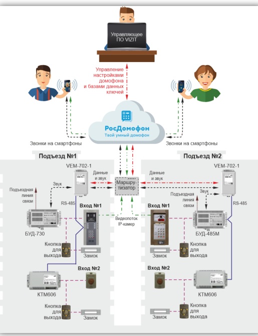 Модуль VEM-702-1 обеспечивает:● Подключение к сети Ethernet ● Интеграцию видеодомофонов VIZIT с облачным сервисом РосДомофон (VEM-702-1: VEM-702 + карта памяти microSD РосДомофон)● Дублирование вызова с видеодомофона на смартфон абонента● Для трансляции видеопотока IP-камеры блока вызова не нужен публичный статический IP-адрес● Удалённое администрирование настроек, базы ключей и индивидуальных кодов перечисленных выше блоков через Интернет● Удалённое обновление программного обеспечения перечисленных выше блоков