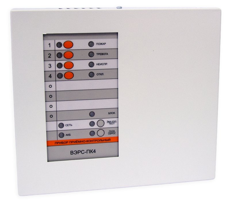 Прибор приемно-контрольный охранно-пожарный. 4 ШС (охранные, пожарные, технологические), 3 реле ПЦН, выходы ОК с током нагрузки до 1А с контролем линий оповещения, вход ТМ, RS-485, конфигурирование с помощью ВЭРС-ПК Prog, напряжение питания 220 В, вход внешнего РИП, под АКБ 12 В /4,5 Ач, металлический корпус