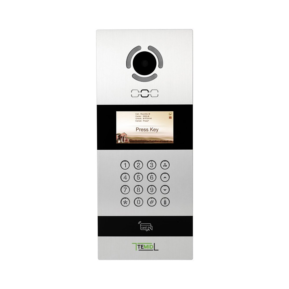 Вызывная панель IP-домофона. Вызывная IP видеопанель многоабонентская. Система: Linux. TFT цветной экран 4,3“ с подсветкой и подогревом. Цифровая IP камера: 2.0 Мп HD с ИК подсветкой.. Угол обзора 110° (по горизонтали). Считыватель MIFARE. Встроенное реле. Память: 60 000 карт. IP65, -40...+55°C. Врезной монтаж. Питание: PoE (IEEE802.3af), DC 12V/2A. Поддержка SIP Ver 2.0. Алюминий. Механические кнопки с подсветкой. 380х158х56 мм.. Открытый API, поддержка Цвет - серебро