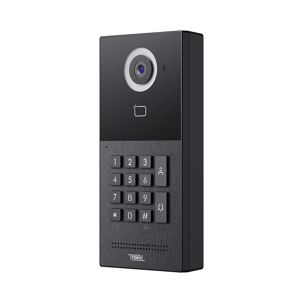 Вызывная панель IP-домофона. Вызывная IP видеопанель многоабонентская. Система: Linux. Цифровая IP камера: 2.0 Мп HD с ИК подсветкой. Угол обзора 110° (по горизонтали). Считыватель MIFARE. 2 встроенных реле. Память: 60 000 карт. IP65, -40...+55°C. Врезной монтаж. Питание: PoE (IEEE802.3af), DC 12V/2A. Поддержка SIP Ver 2.0. Алюминий. Механические кнопки с подсветкой. 188х88х34 мм. Накладной монтаж. Открытый API, поддержка Цвет - черный.