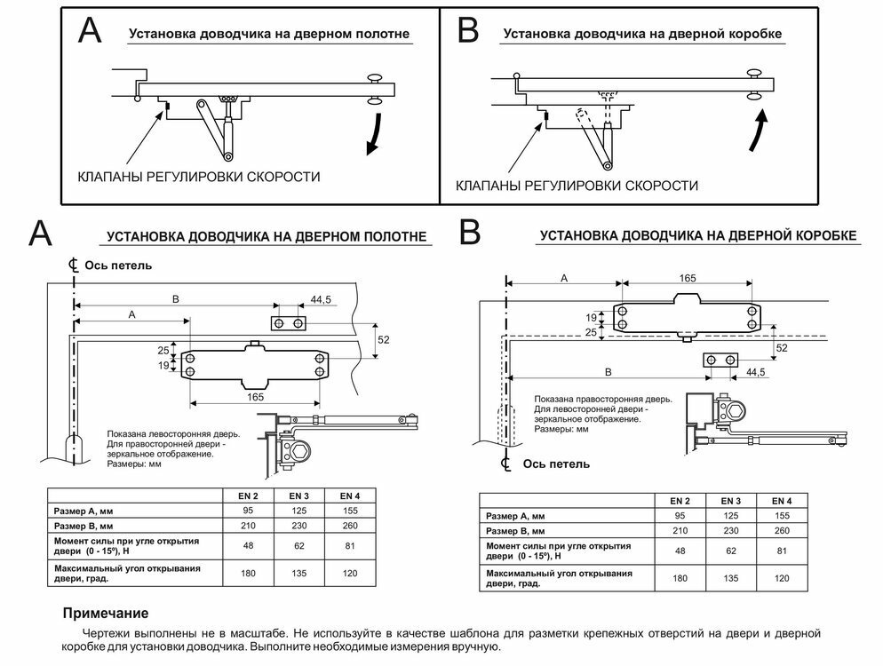 ● Температура застывания гидравлической жидкости: -60°С;● Рабочий диапазон температур: от -50°С до 60°С.● Раздельное регулирование скорости закрывания и доведения двери в двух секторах: - от 170° до 15°; - от 15° до 0°.● Доводчик проходит регулярные стендовые испытания. Средняя наработка на отказ – 1 000 000 циклов.