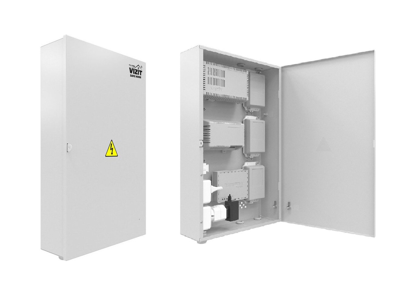 Монтажный комплект. Монтажный бокс предназначен для установки в нем составных частей домофона-видеодомофона (БУД, БПД, БК, VEM-701, router "MikroTik"). Габаритные размеры 307х505х115 мм. Устанавливается на стену внутри помещения.