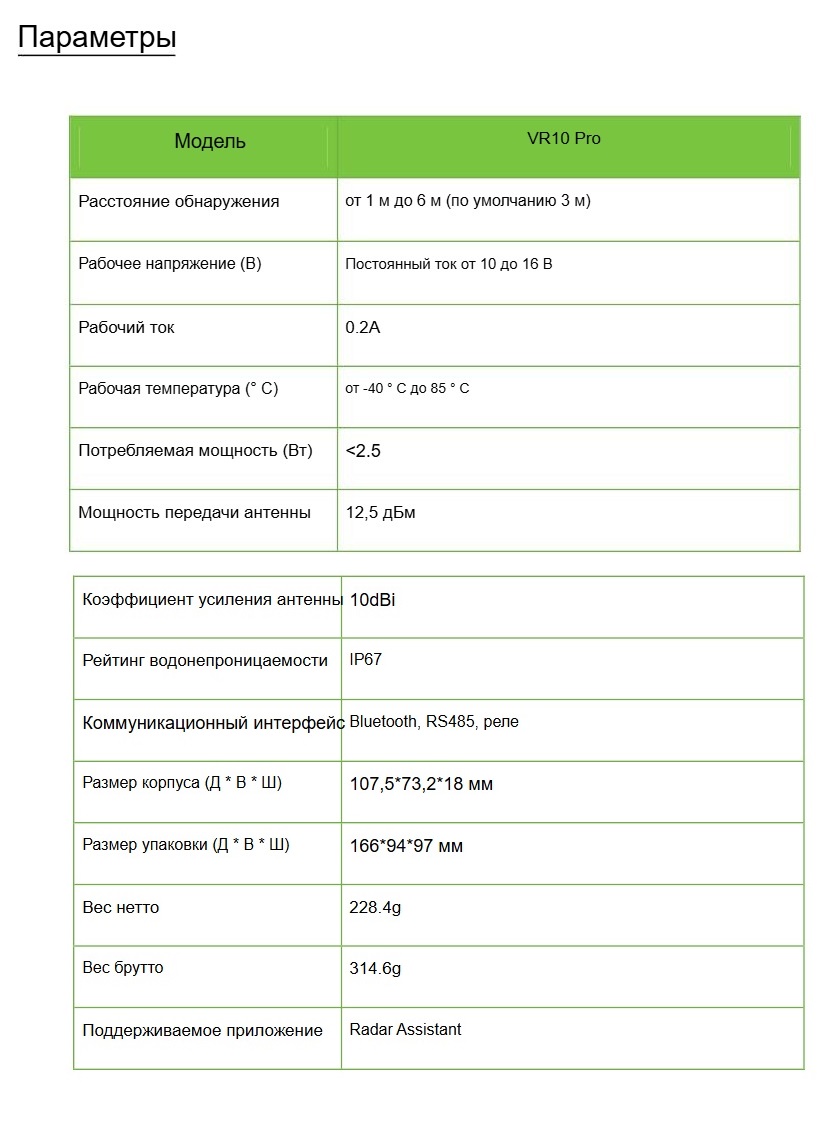 ZKTeco VR10 Pro – второе поколение радаров, разработанных для обнаружения и идентификации различных транспортных средств (мотоциклов, легковых и грузовых автомобилей), пешеходов и небольших объектов в зоне от 1 до 6 м возле шлагбаума.Благодаря соединению с основной платой шлагбаума VR10 Pro может помочь предотвратить столкновение транспортных средств с препятствиями или повреждении имущества при автоматическом опускании стрелы. По сравнению с петлевым детектором, радар имеет более простую и гибкую установку и низкие трудозатраты.Кроме этого, пользователи могут настраивать параметры устройства с помощью мобильного приложения Radar Assistant, при подключении к Bluetooth.
