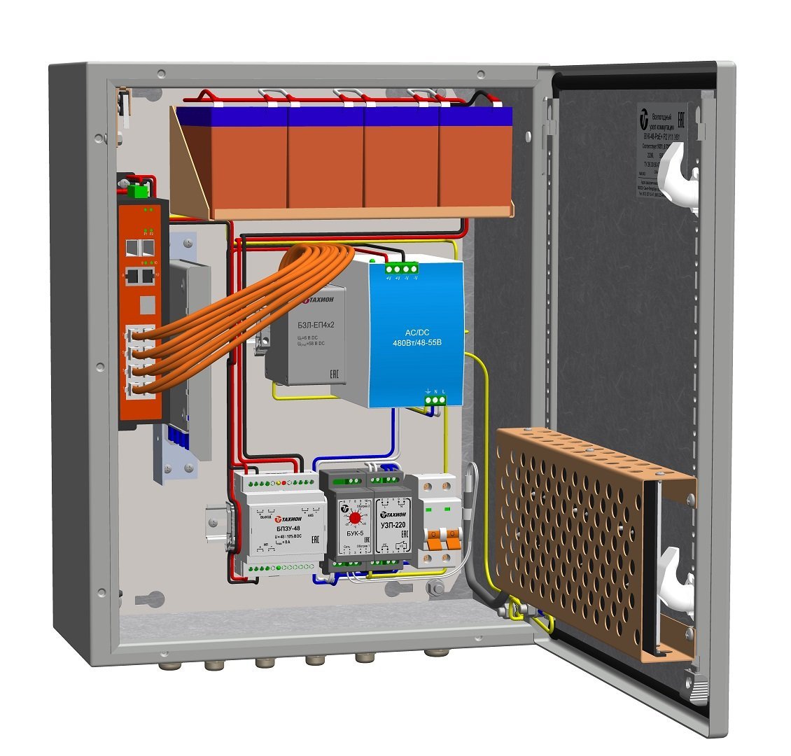 Уличная станция. Всепогодный узел коммутации: управляемый гигабитный коммутатор, 8xRJ45 портов POE 10/100/1000Мб(af/at/bt); 2хSFP порта 1G Combo; POE бюджет 300Вт; блок управления климатом БУК-5; обогреватель ОТШ-60; ИБП 48В/480Вт; кронштейн для аккумулятора 9ач(приобретаются отдельно); устройством защиты электропитания УЗП-220; блоком защиты от импульсных перенапряжений БЗЛ-ЕП4х2шт; оптический кросс SC; тамперный контакт; Автомат ВА47-292Р 6А; корпус из стали; IP66; -60…+50°С; AC 220В; 420Вт; гермовводы; 400х500х210 мм.