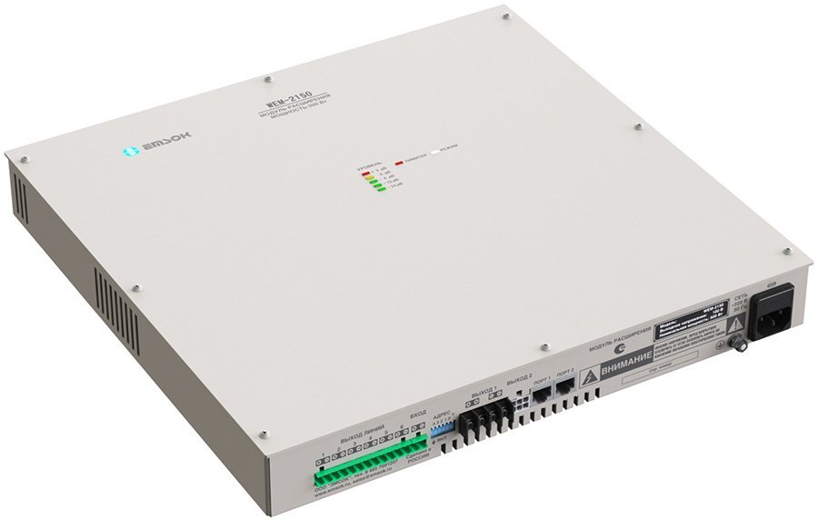 Модуль расширения управляется станцией оповещения WSA-2ХХХ или блоком управления сигналами MPU-20XX по интерфейсу RS-485, что позволяет использовать его как в компактной системе, так и в составе оборудования предназначенного для установки в 19-дюймовою стойку.Модуль расширения удобно использовать для создания распределенных систем или озвучивания отдельностоящих зданий. Преимущество перед оборудованием установленным в 19"-стойку, заключается в том, что нет необходимости прокладывать высоковольтные сильноточные кабели линий оповещения, достаточно проложить один кабель UTP не ниже 3 категории. Максимальная длина кабеля управления, при которой гарантируется работоспособность устройства в системе, составляет 1000 м. В случае если объект удален на расстоянии более 1000 метров, необходимо использовать ретранслятор RPT-01.Модуль расширения оснащен усилителем мощности класса "D" со встроенным импульсным источником питания, что позволяет значительно повысить КПД и массогабаритные характеристики. Дополнительным преимуществом высокого КПД является пониженное потребление электроэнергии от источника бесперебойного питания в активном режиме, что является особенно важным в системах оповещения.Модуль расширения оснащен всеми необходимыми системами защиты (от перегрузки, короткого замыкания на выходе, от превышения или понижения напряжения питания, от перегрева, от появления постоянного напряжения на выходе). Для предотвращения срабатывания защиты от перегрузки при кратковременных всплесках входного сигнала усилитель оснащен лимитером.Помимо коммутации 6 линий оповещения встроенный коммутатор производит подключение линий к измерителю импеданса, встроенному в WSA-2XXX или MPU-20XX для контроля их состояния