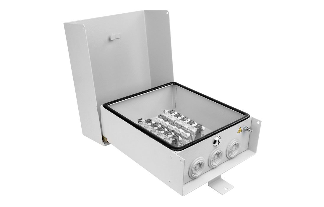 Ящики кабельные предназначены для концевой заделки и коммутируемых соединений кабелей местных сетей связи с абонентскими кабелями (проводами).Ящики ЯК устанавливаются вне помещений на стенах домов, столбах линий электропередачи и т.п. с использованием для крепления либо винтов-саморезов, либо ленточных хомутов.Конструкция крышки ящика исключает попадание внутрь воды даже при нарушении герметичности уплотнителей. Для предотвращения несанкционированного доступа ящик снабжен замком с универсальным секретом.Ящики ЯК могут комплектоваться как плинтами различных типов, так и однопарными соединительными модулям