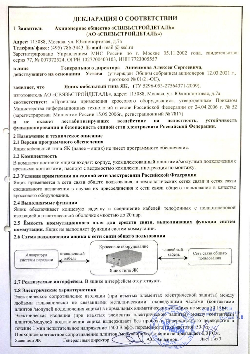 Ящик кабельный ЯК-ПМ-40/20, 20 модулей МВТ-1Н. Ящик кабельный ЯК-ПМ-40/20, 20 модулей МВТ-1Н ССД